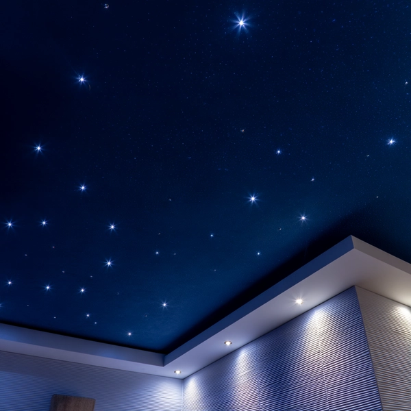 Натяжные потолки с подсветкой позволяют скрыть светодиодные ленты и профили внутри конструкции, создавая аккуратный, современный внешний вид без видимых проводов и лишних элементов. Свет становится частью общего дизайна и одновременно выполняет практическую задачу — обеспечивает комфорт в любое время суток.