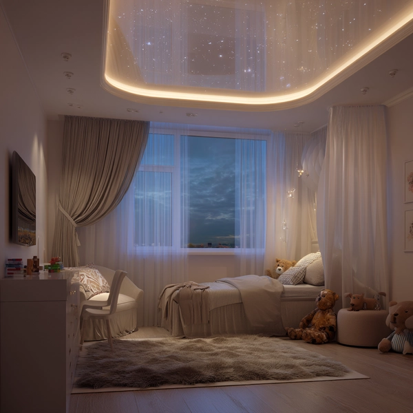 Освещение в детской влияет на концентрацию, настроение и качество сна. Мы заранее рассчитываем схему размещения светильников с учётом расположения кровати, письменного стола и игровой зоны.