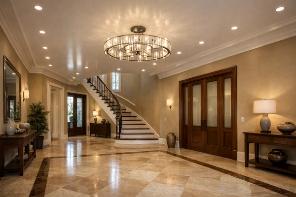 Входная зона практически всегда лишена естественного света. Ошибка в расчёте освещения приводит к тому, что помещение кажется узким, тёмным и визуально низким.