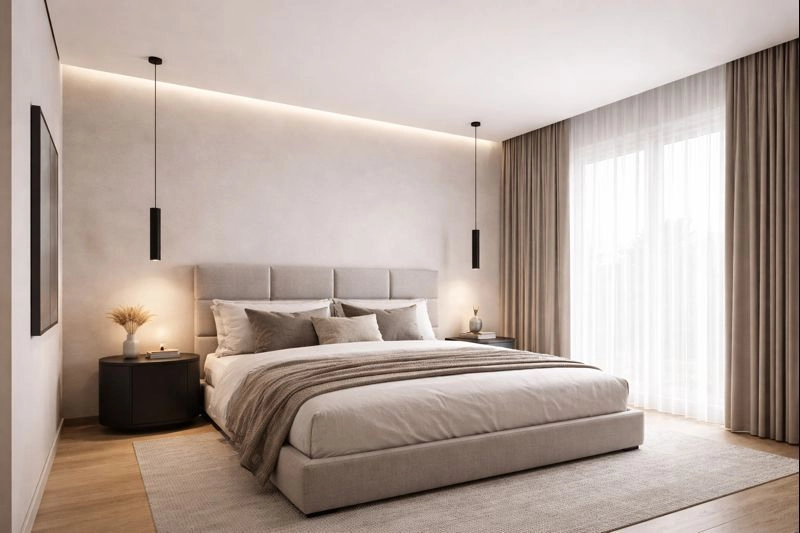 Сатиновые полотна выбирают в тех случаях, когда хочется добавить интерьеру глубины и мягкости, но без глянцевого эффекта. Лёгкое, деликатное отражение света делает потолок визуально более «живым», при этом теневая щель сохраняет свою выразительность и аккуратность. Этот вариант часто используют в жилых помещениях — спальнях, гостиных, кухнях-гостиных, где важна комфортная атмосфера.